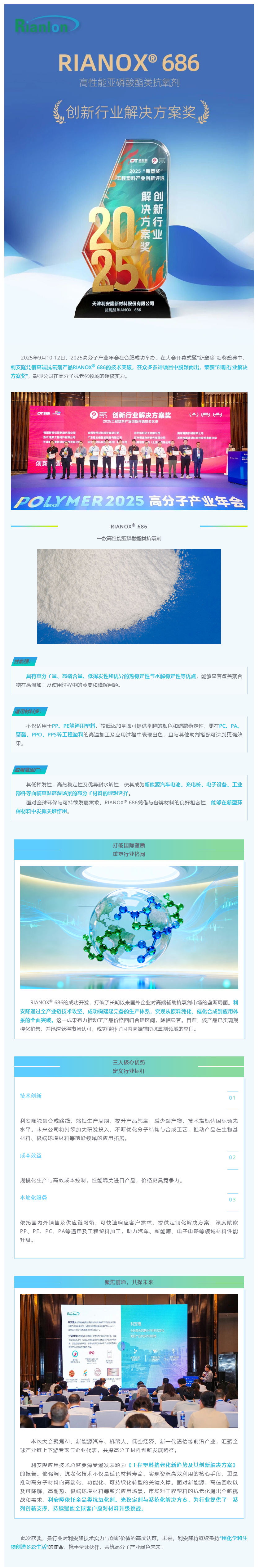 利安隆RIANOX 686打破国际垄断,斩获创新行业解决方案奖