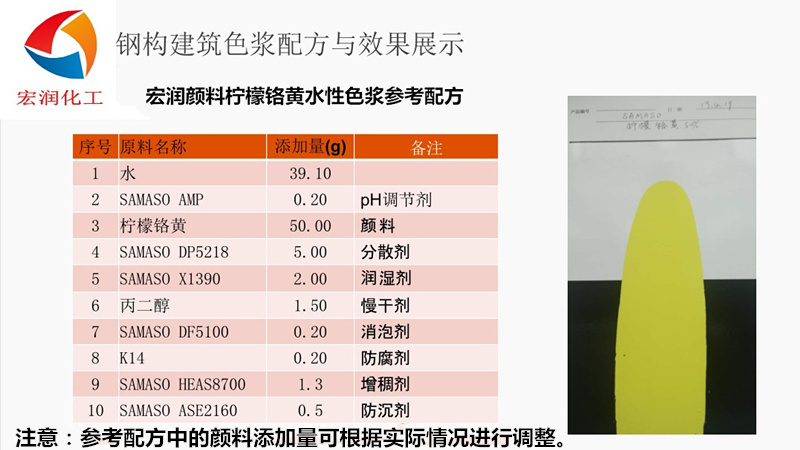 山东彩之源颜料科技:柠檬铬黄颜料是一种带绿相柠檬色颜料,铬酸铅含量不少于50%,色彩鲜艳,分散性好,具有较高的遮盖力、着色力、耐候性和耐热性。