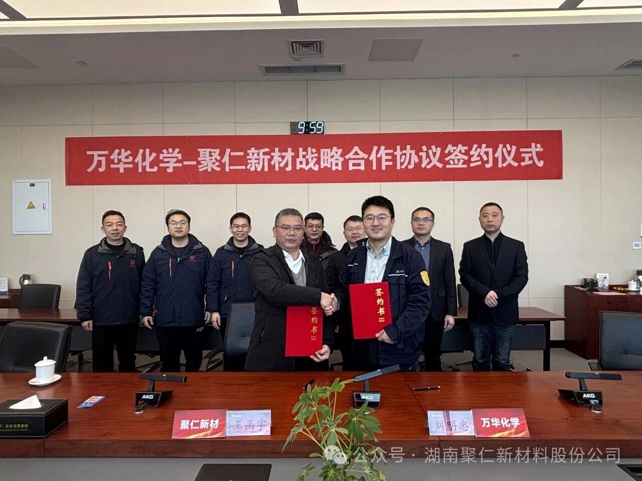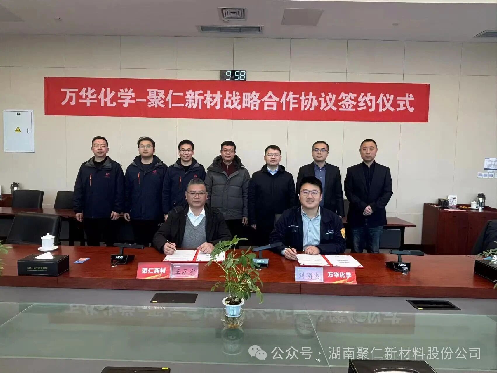 2026年1月13日,聚仁新材与万华化学战略合作协议签约仪式在烟台万华隆重举行。双方核心业务负责人及相关代表齐聚一堂,共同见证这一重要时刻,延续双方深度协作、共谋发展的全新篇章。