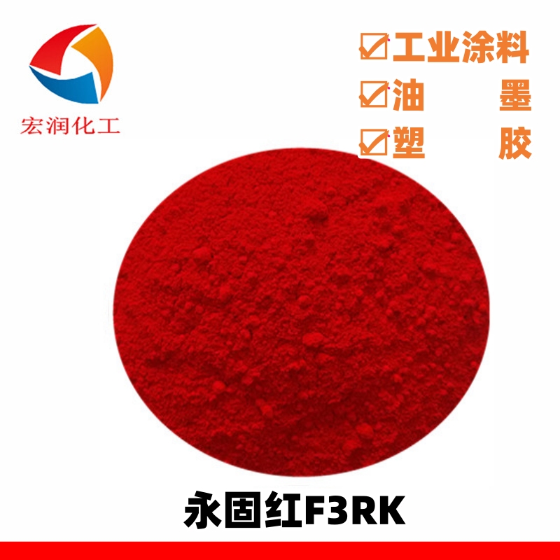 永固红F3RK适用于油墨、印花浆、粉末涂料、塑料着色等行业。在油墨中有较好的耐油脂、耐皂化、耐酸性、耐碱性、耐清漆涂层、耐消毒处理能力,耐晒牢度优异,含8%颜料的凹版油墨耐晒牢度可高达7级。